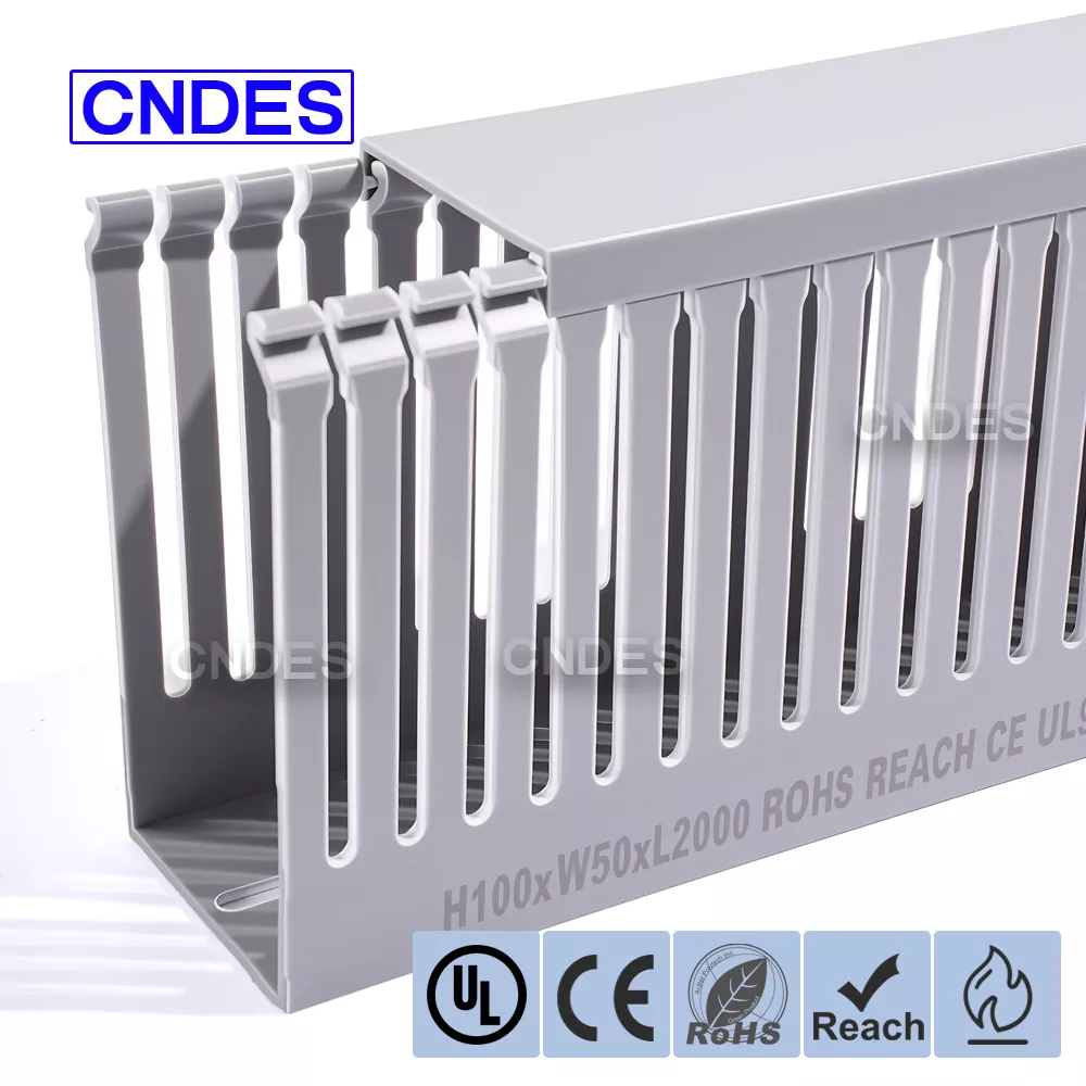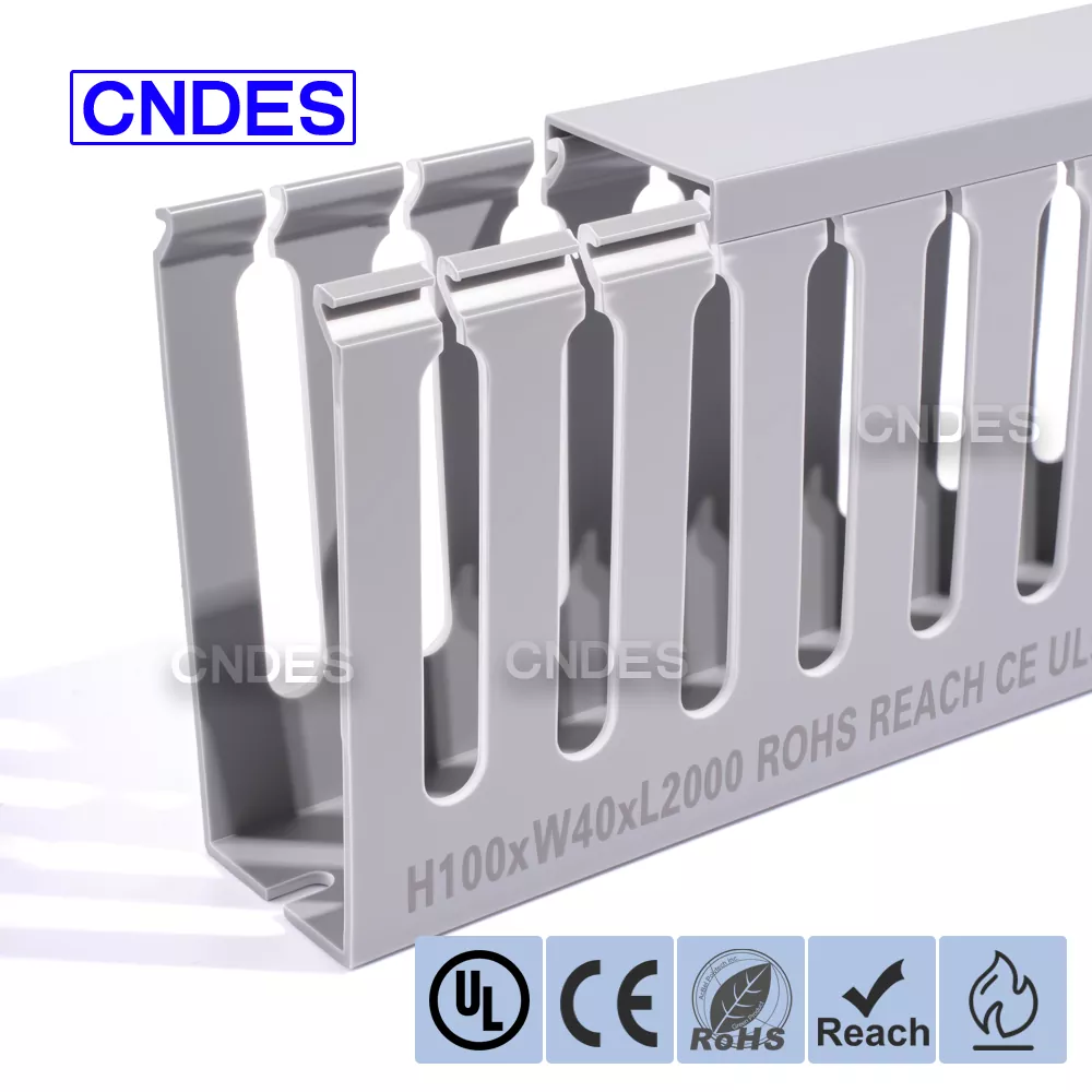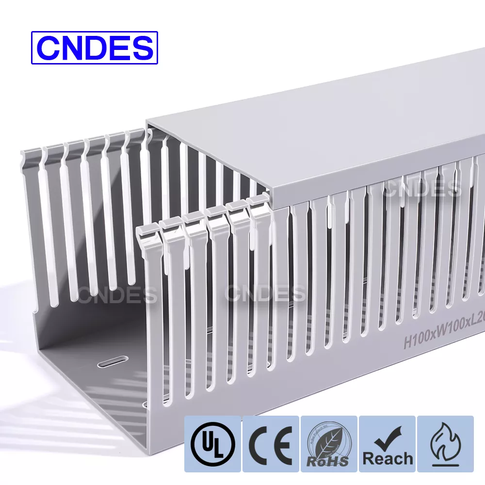 Kalitatezko 100 mm-ko altuera irekiko zirrikitu PVC itxitura kableatu hodiak UL94 V-0 suaren aurkako PVC materialarekin fabrikatuta dago, suaren iturria kendu ondoren auto-itzaltzen dena, suaren hedapena modu eraginkorrean motelduz eta segurtasun elektriko orokorra hobetuz. Bere isolamendu-errendimendu bikainak korronte-ihesak eta zirkuitu-labur-arriskuak saihesten laguntzen du, itxitura elektrikoetan eta kontrol-paneletan funtzionamendu egonkorra bermatuz.