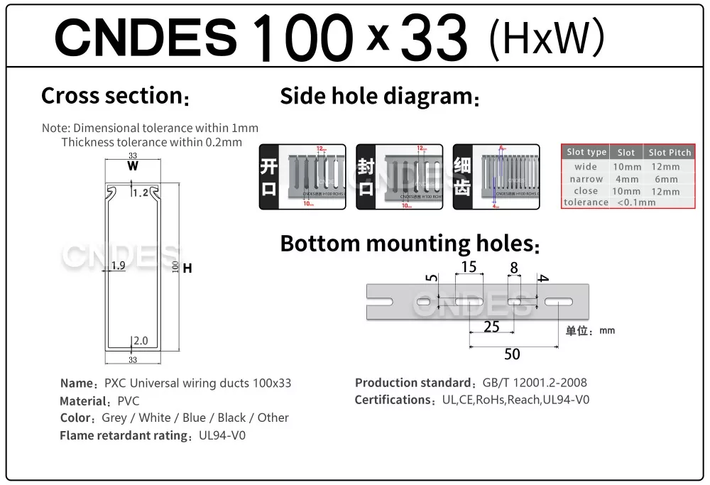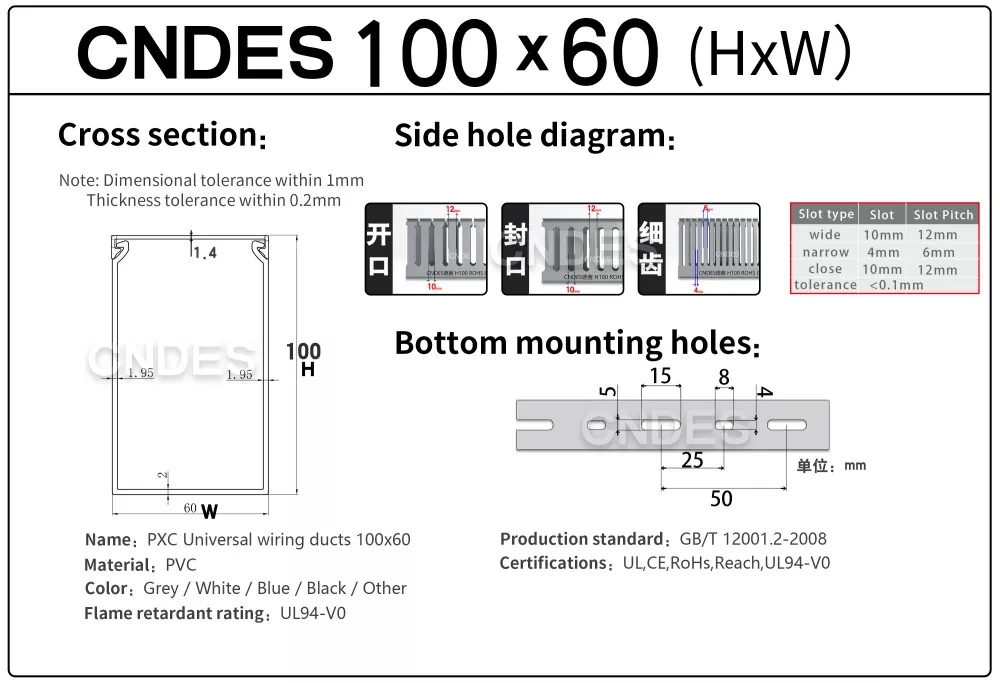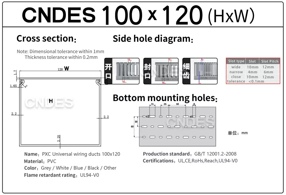 CNDES 24 urteko esperientzia duen kable-erretiluen fabrikatzaile profesionala da, 100 mm-ko altuera irekiko PVC-ko kableatuaren hodi pertsonalizatuen ekoizpenean espezializatua. Hemen, gure 100 mm-ko altuerako kable-erretilu serieko produktuak aurkeztuko ditugu.