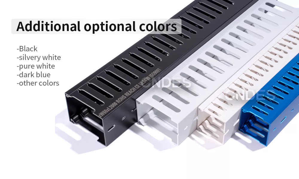 Tamaina sorta osoa eskaintzen du, oso trinkotik (20 × 15 mm) eta handietara (100 × 120 mm), kable kantitate eta diametro ezberdinetara egokituz, hala nola, 40 × 60 mm-ko tamaina aproposa zerbitzariaren kable bidezko kableamendurako. Kolore estandarretan eskuragarri dago zuria, grisa eta beltza bezalako koloreetan, edo pertsonalizatuta logo korporatiboekin eta lerro-zenbakiekin kategorizatzeko erraz eta kableen kudeaketa hobetzeko. Slotted PVC Itxitura kableatu-hodiak osagarri sorta zabala biltzen du, bat datozen konektoreak (adibidez, U formako klipak), estaltzeko plakak eta euskarriak barne. Torloju bidez lotzeko eta klip-on instalazioa onartzen du, muntaketa-metodo anitzekin bateragarria eraikuntza-prozesuak errazteko.