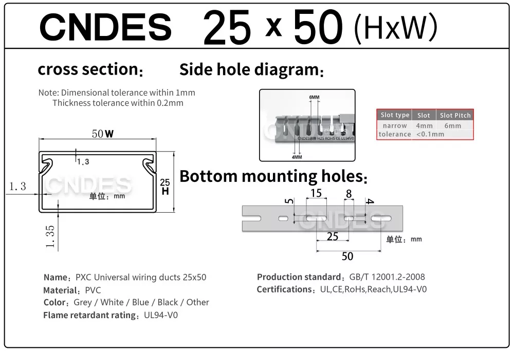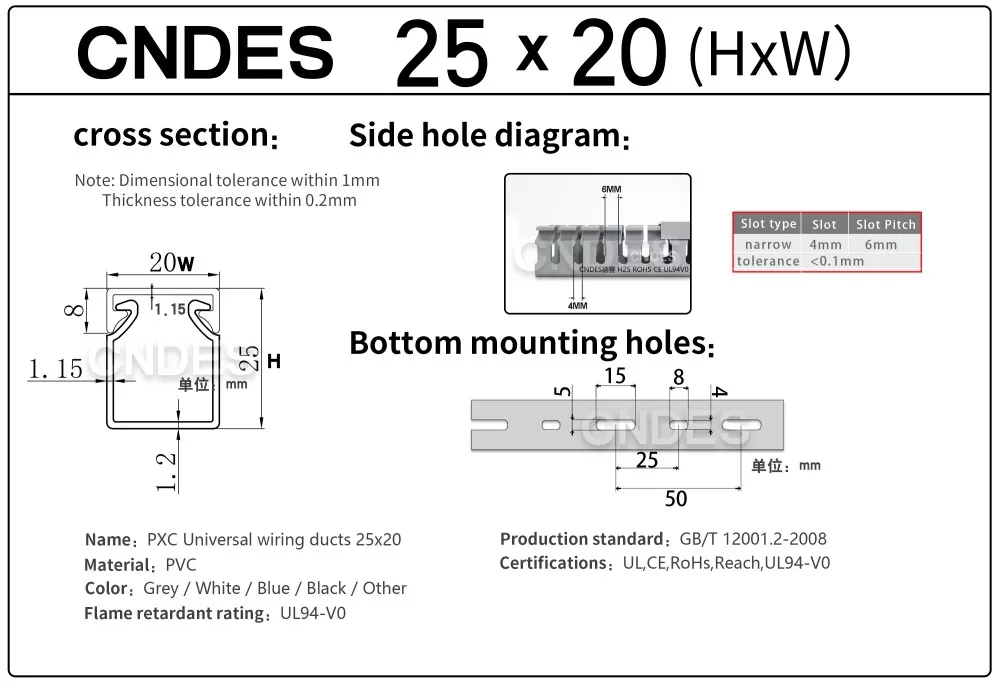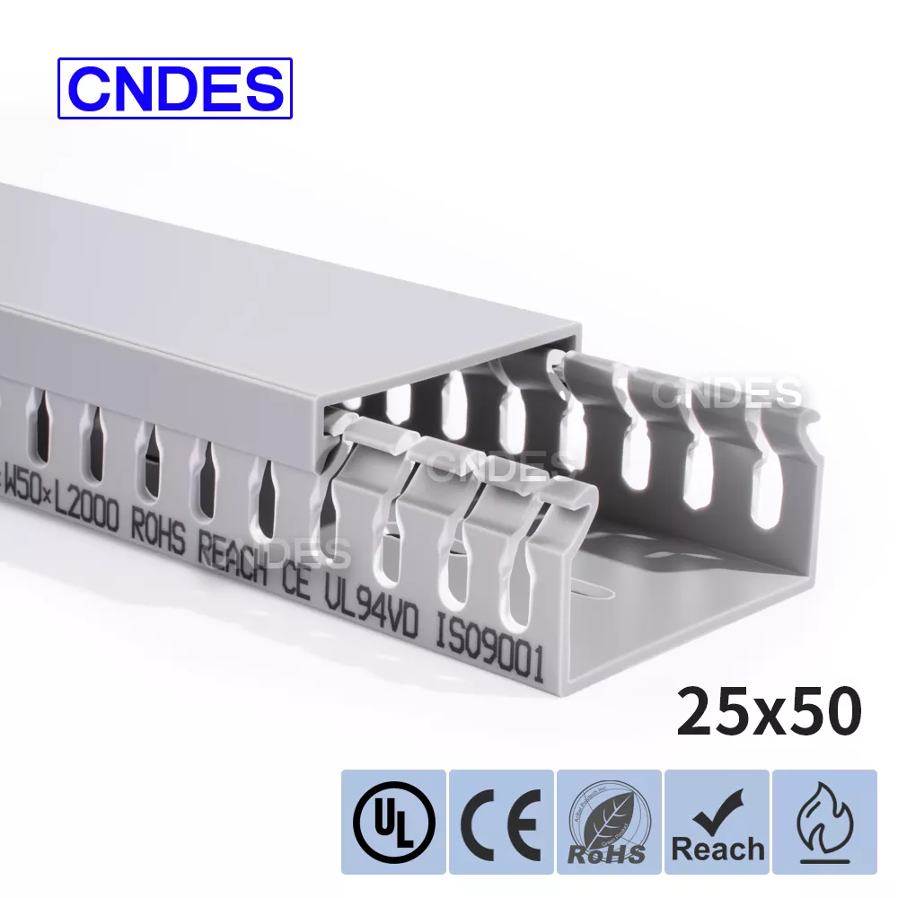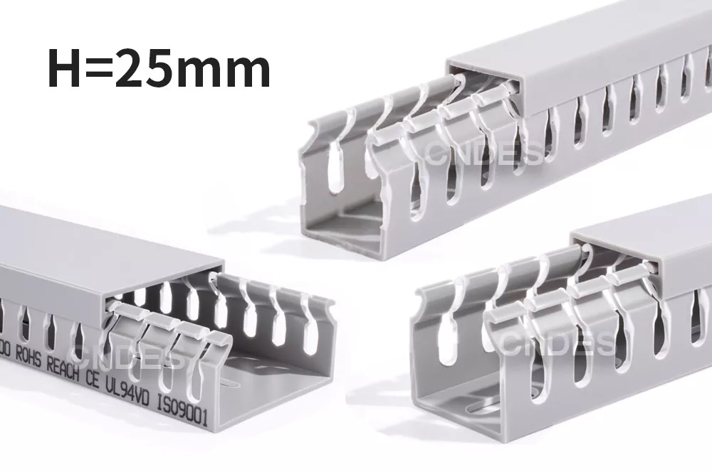 Produktu hau altuera baxuko zirrikitudun PVCko kableatuaren hodi bat da, kontrol panelen barruan kable elektrikoak antolatu, babestu eta gidatzeko diseinatua. 25 mm-ko altuerak instalatzeko aukera ematen du: