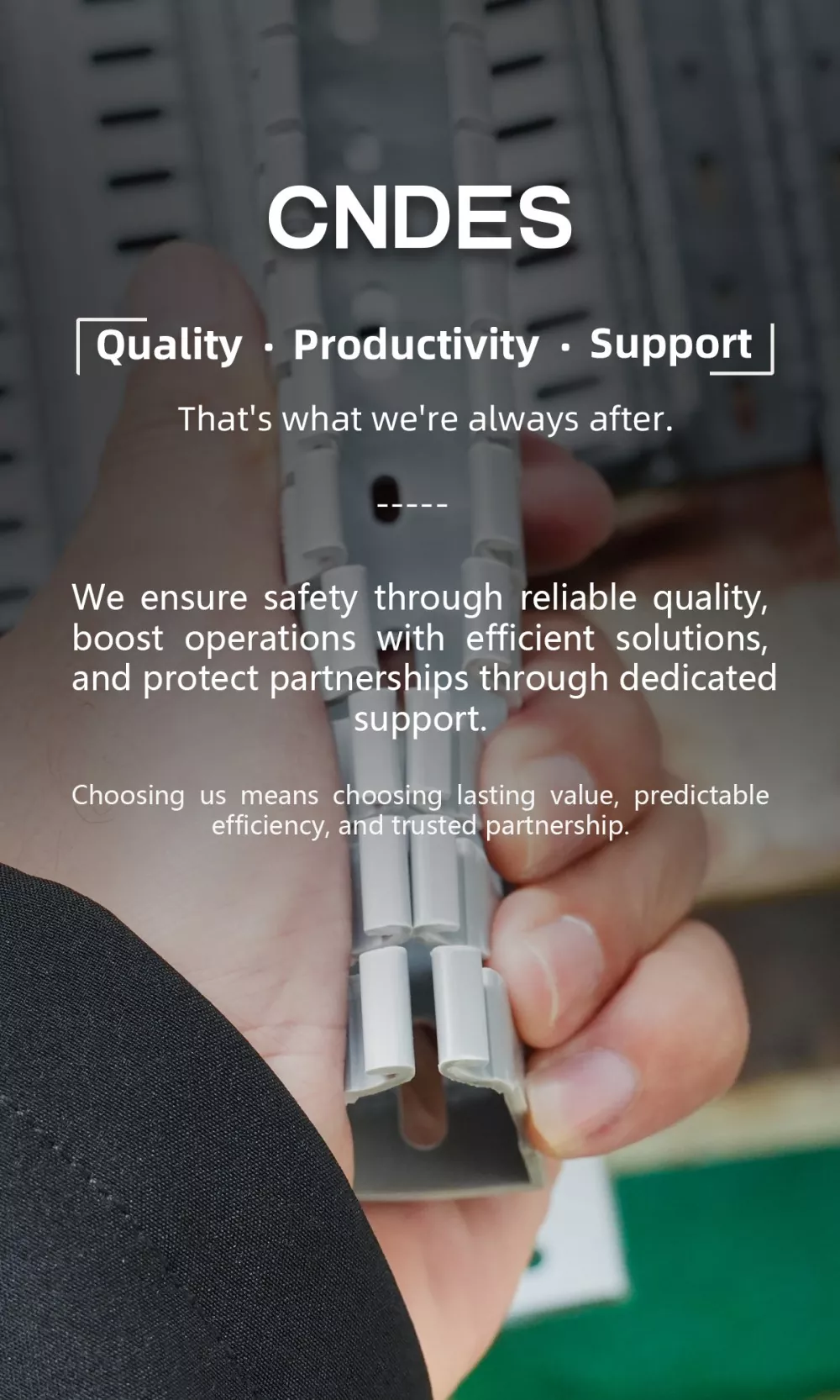CNDES eskarmentu handiko talde teknikoa du. Oinarrizko kide guztiek 20 urte baino gehiagoko esperientzia dute estrusioaren industrian, trebeak dira materialen propietateetan eta ekipoen aplikazioetan eta formulazioen garapenerako gaitasun independenteak dituzte. Aplikazio-eszenatoki desberdinetan oinarritutako aukeraketa profesionalaren aholkularitza eman dezakete.