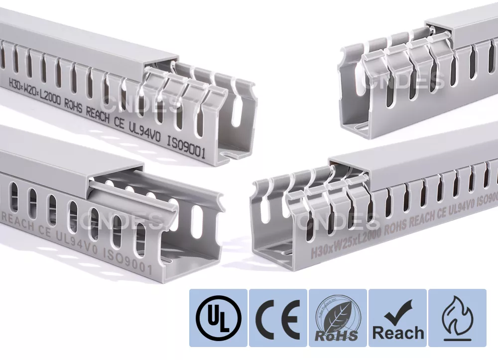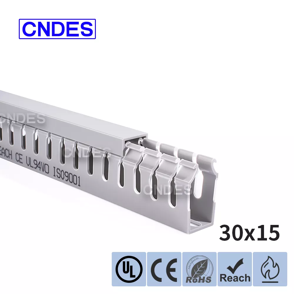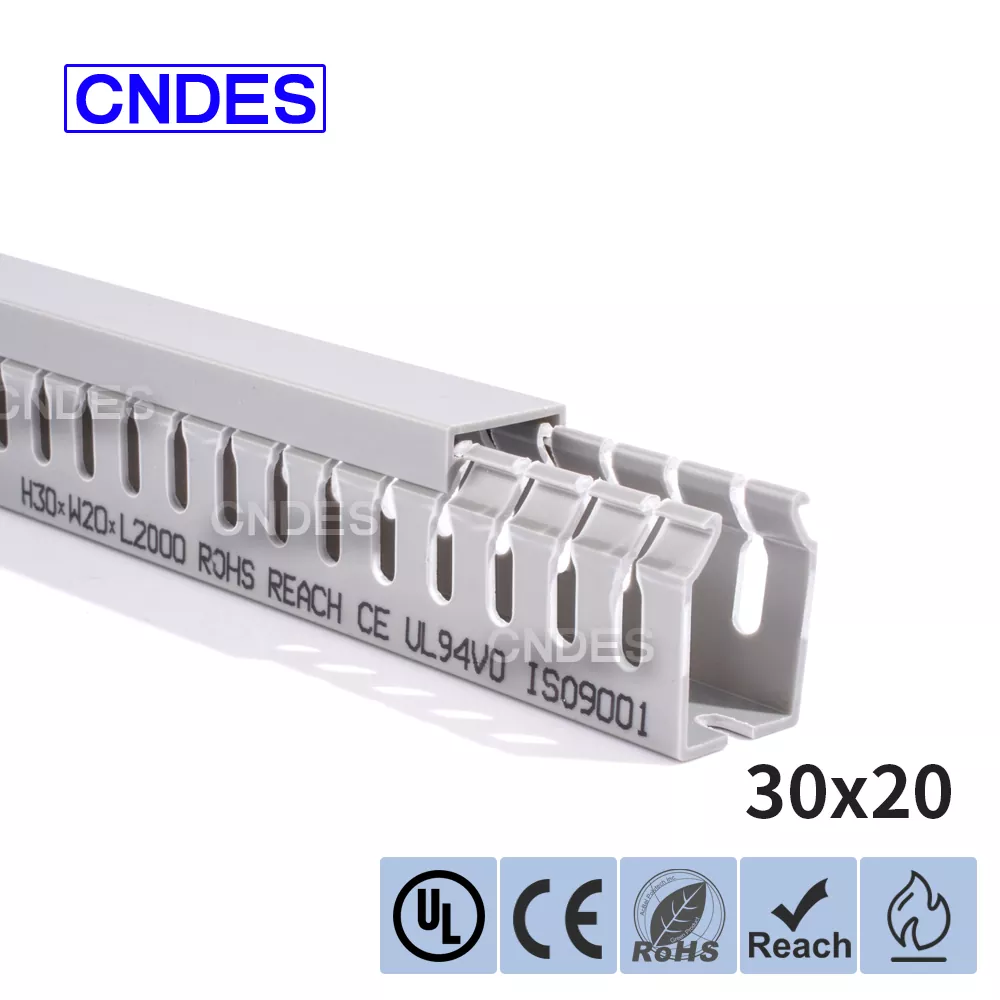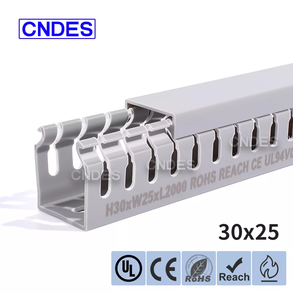 CNDES-en 30 mm-ko altueran zirrizatutako PVC kableen kudeaketa pertsonalizatua kableen bideratze eraginkor, trinko eta segururako diseinatuta dago hainbat industria, merkataritza eta egoitza ezarpenetan. Espazio-murriztapenak dituzten aplikazioetarako aproposa, hodi honek zure kableatuak antolatuta, babestuta eta erraz eskura daitezkeela ziurtatzen du.