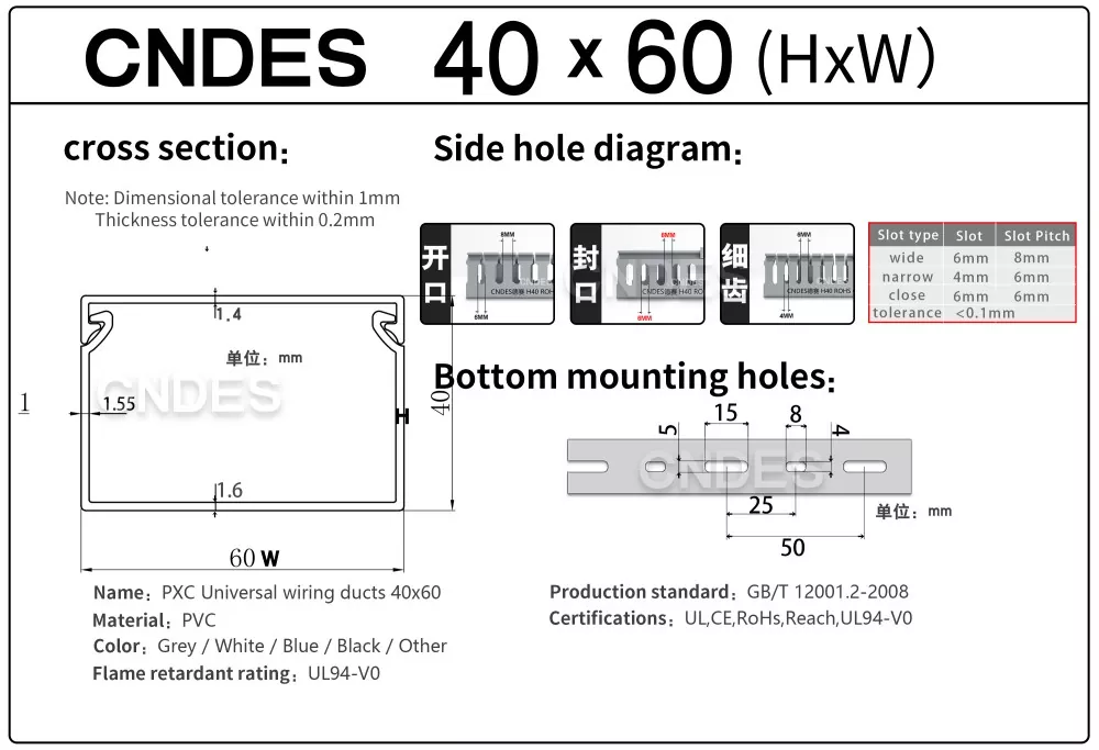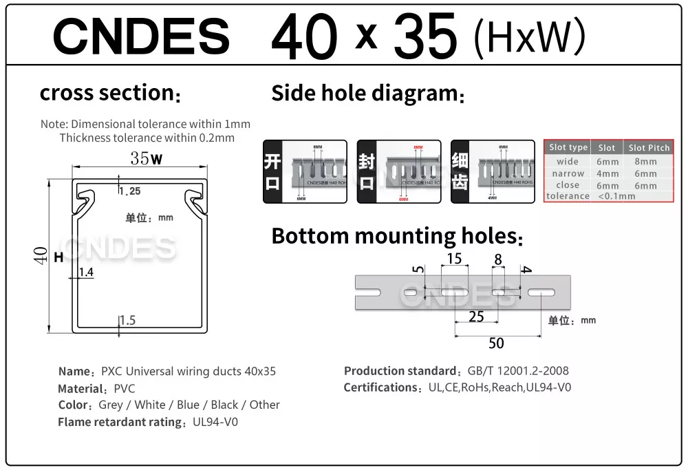 CNDES Slotted PVC kableatua Raceway Duct fabrikatzaile eta hornitzaile liderra da. Hemen 40 mm-ko altuera duten kable-erretiluak aurkeztuko ditugu, 40*25, 40*30, 40*35, 40*40 eta 40*60 barne.
