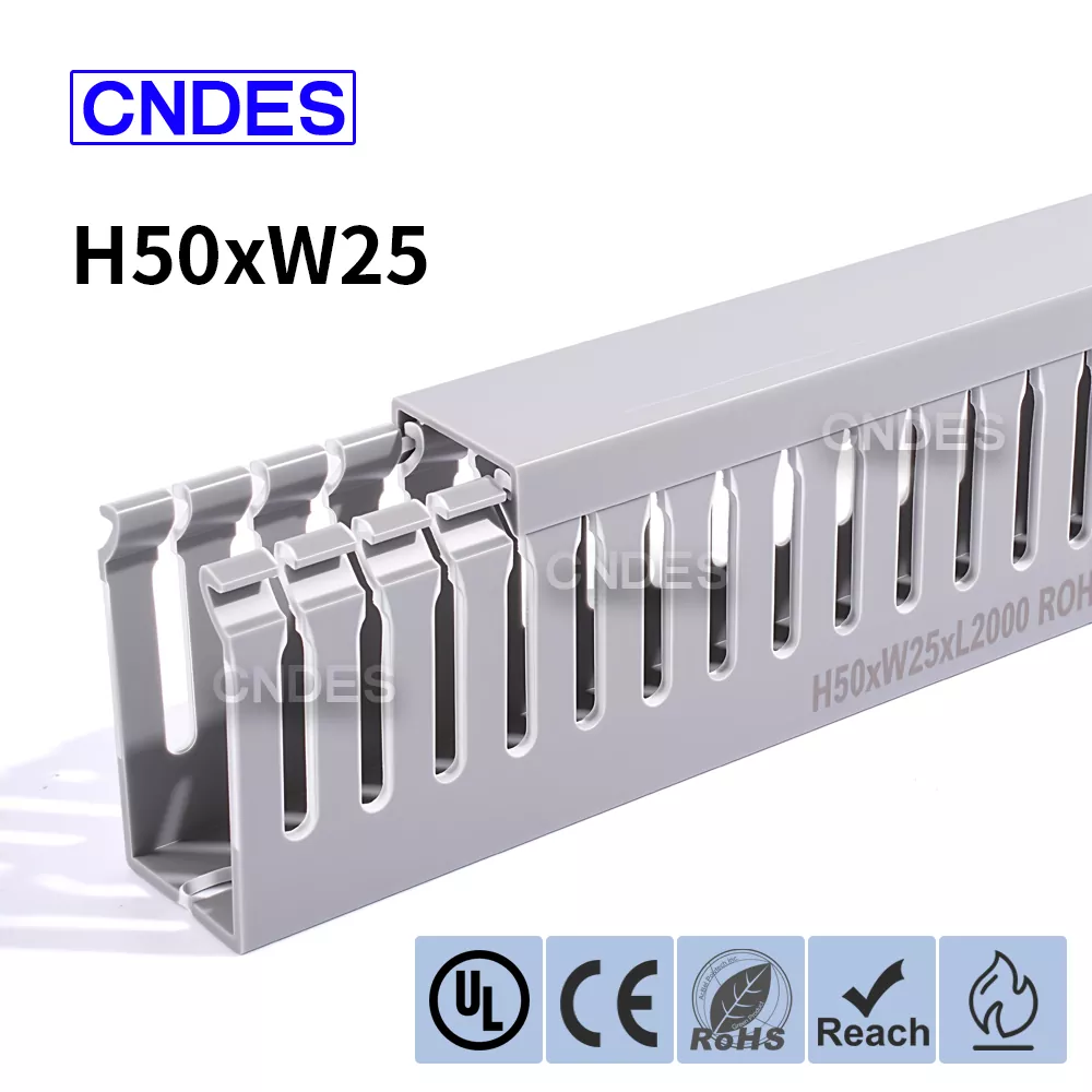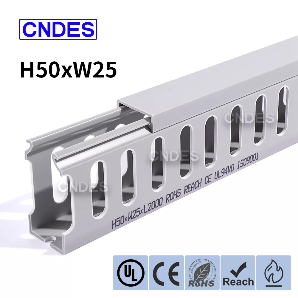 Zure armairu elektrikoen edo panel industrialen barruan kableak antolatzeko modu erraz eta fidagarri baten bila? CNDES-en 50 × 25 mm-ko PVCko armairu elektrikoaren kanalizazio pertsonalizatua zure kableatuak txukun, eskuragarri eta seguru mantentzeko diseinatuta dago.