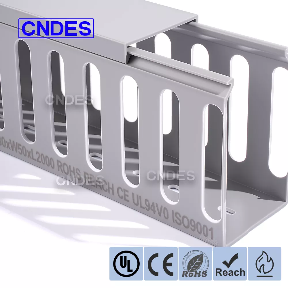 CNDES Txinan kokatutako PVC zirrikituzko kable erretiluen fabrikatzaile profesionala da. Hemen, gure 80 × 50 zirrikitu PVC Panel Kable Antolatzailea aurkeztuko dugu, non 80 * 50 mm-ek 80 mm-ko altuera eta 50 mm-ko zabalera duen kable-erretilu bat adierazten duen.