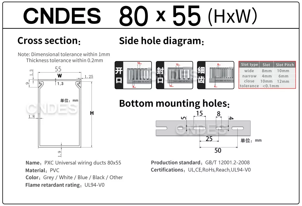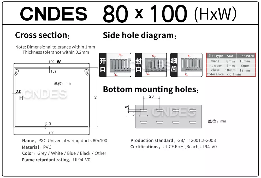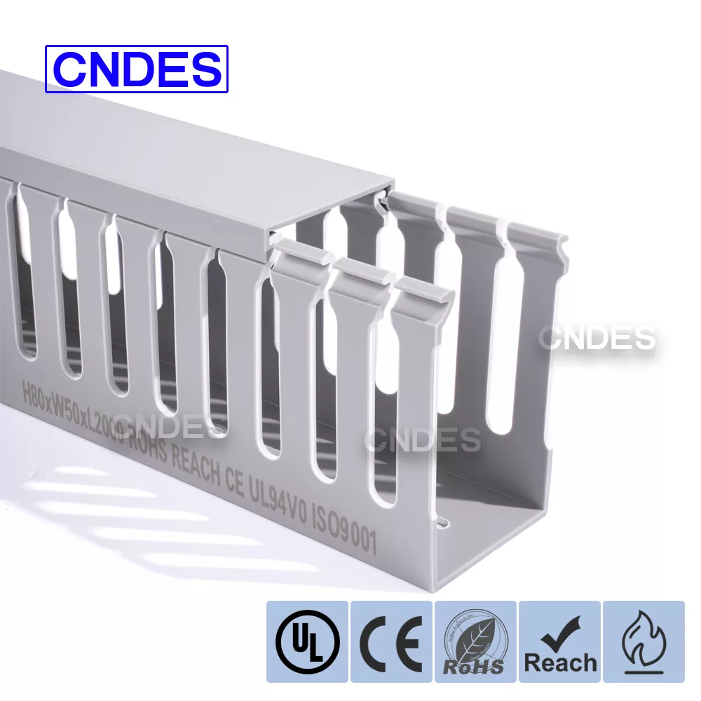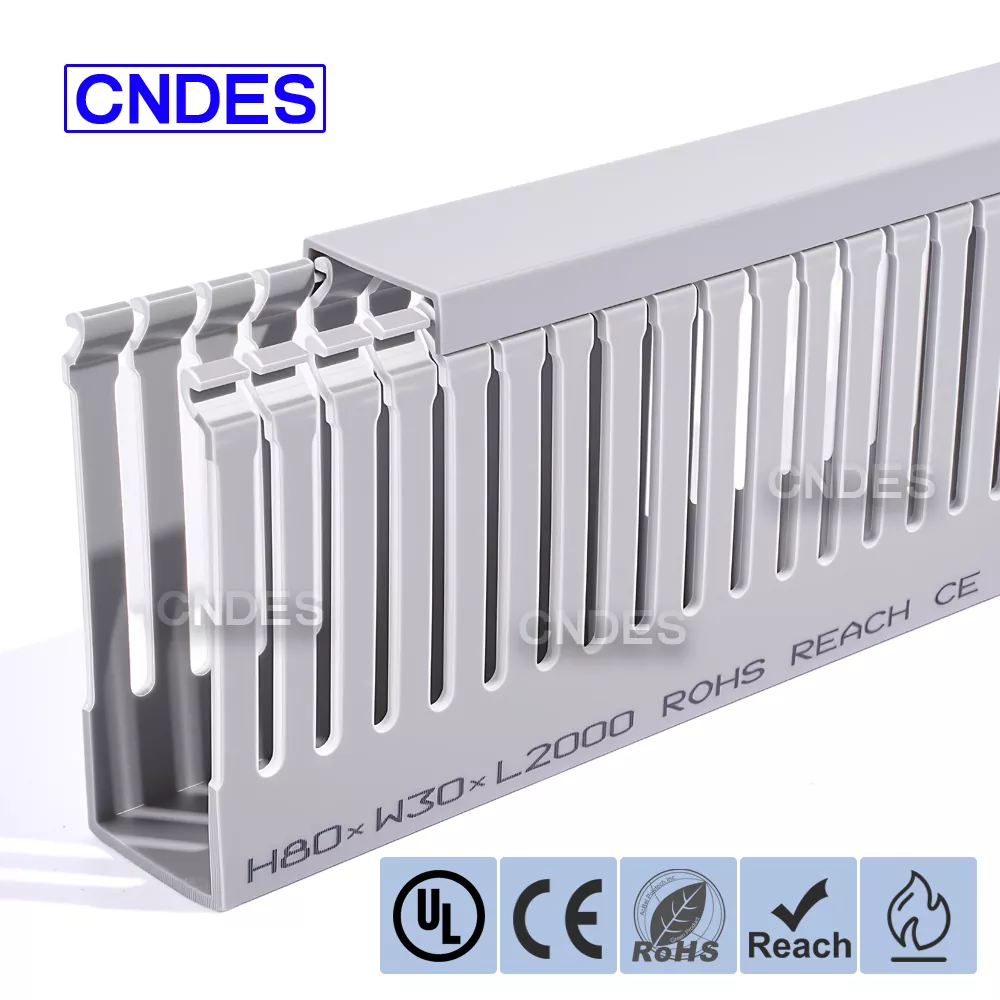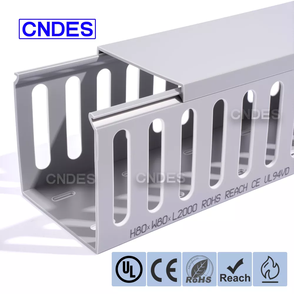CNDES-en 80 altuerarako zirrikitu pertsonalizatutako PVC automatizazio kable-hodia automatizazio industrialeko sistemetan kableen kudeaketa eraginkorra izateko diseinatuta dago. Bere 80 mm-ko altuera eta zirrikitu-diseinuarekin, hodi honek dentsitate handiko kableatuetarako leku zabala eskaintzen du, kableak antolatuta eta babestuta mantentzen dituen kontrol-sistema konplexuetan, PLCetan eta makinen kableatuaren aplikazioetan.